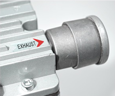 2.進氣口接1/4-12NPT或1/2-20NPT接頭或者其它規格接頭和進氣過濾消音器等裝置,接好管子;出氣口接管或消音器。