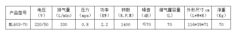 臺冠空氣壓縮機,簡稱空壓機,是工業現代化的產物,ML603-70壓縮機用途非常廣泛,主要表現在用于輪胎充氣、噴漆、潛艇沉浮、沉船打撈、海底石油勘探、氣墊船、食品、制藥工業,利用壓縮空氣攪拌漿液、高壓空氣爆破采煤等等。