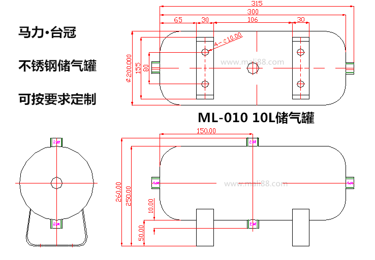 馬力·臺冠,不銹鋼儲罐,緩沖氣罐??砂葱枰蠖ㄖ?,4L,6L,8L,10L,12L等。
